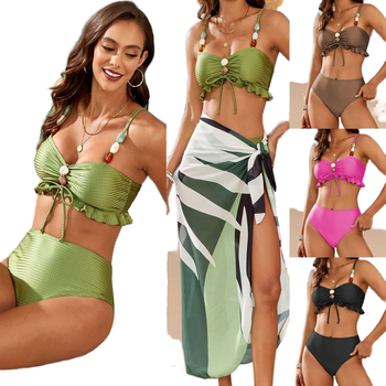 ชุดว่ายน้ำสองชิ้นของผู้หญิงและบิกินี่สามชิ้นลายแบบข้ามพรมแดน2025ใหม่