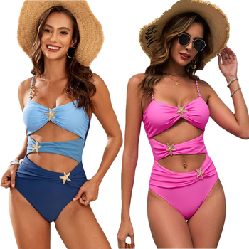 ชุดว่ายน้ำแบบชิ้นเดียวของผู้หญิงชุดว่ายน้ำบิกินี่แบบชิ้นเดียวเปิดหลังผ่าหน้าชุดว่ายน้ำสไตล์ยุโรปอเมริกา2025