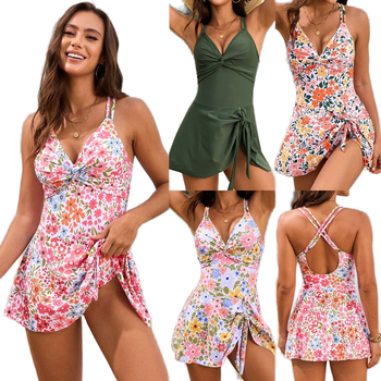ชุดว่ายน้ำชิ้นเดียวสไตล์กระโปรงไขว้ด้านหน้าแบบผูกด้วยการออกแบบการค้าต่างประเทศยอดนิยมสำหรับผู้หญิง2025ใหม่