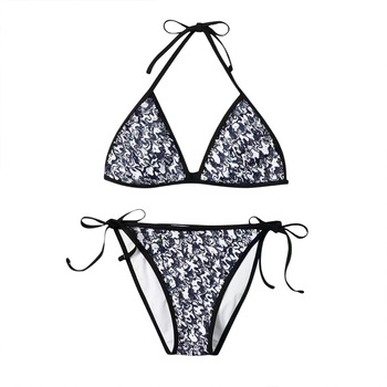 Baskılı mektup desen ön Logo çevre dostu 2 parça Set kravat-up Bikini mayo